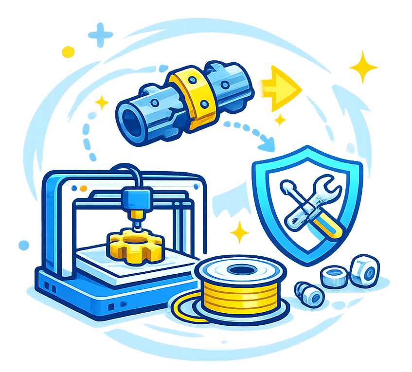 Impression depuis fichier fourni (STL/STEP) ou pièce conçue ensemble, avec conseils matière/orientation.